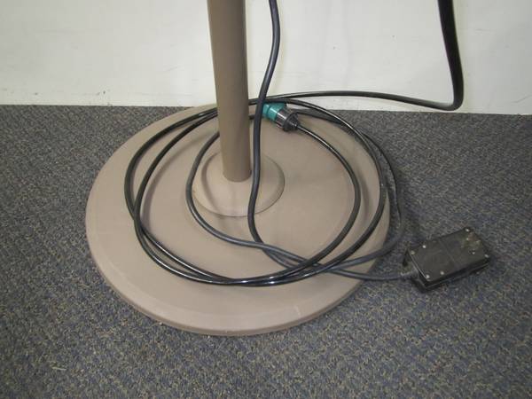 . Feature Comforts brand Model No. FS40-9L oscillating misting fan, in very good condition. Will show plugged in. 19" round face, 17" round base. It has an attached hose to feed in the water. The fan ran quietly when tested. Mist was not tested. 3 speed settings, tilting angle and height adjustable. 120v, .45 amps. 210107