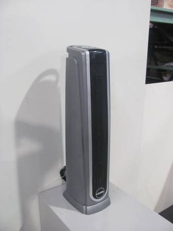 . Lasko Model 5572 portable ceramic tower movable hot air electric space heater. In excellent clean working condition. Will be shown plugged in. 120V, 1500 W. Base is 7" wide x 9.5" x 28.75" high to handle. 230731
