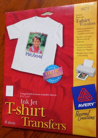 Avery #3271 Ink-Jet T-Shirt Transfers- Of course you can also use these for a Carry Bag, Pillow, Sweatshirt- or whatever you think up!