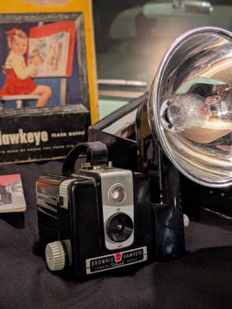 What?? A vintage Hawkeye Brownie?? You've been looking for this, or your partner has... We'll, here it is! Super cute to put on the shelf, this one has the box and flash bulbs! Looks great set up!