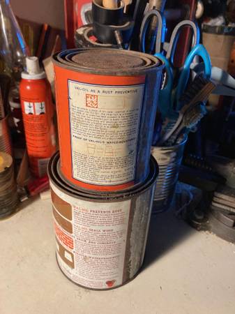 Vintage Val oil from Valspar. good for concrete metal wood. Quart and pint. Sold together. $20. Use or display. Email, text or call Bob at 51842one952four.
