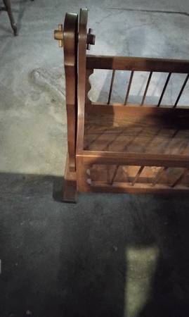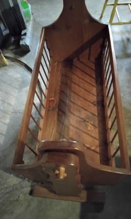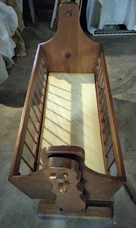 Vintage Hand Made baby cradle in excellent condition. May rock or hold in place with inserted wooden dowel. Perfect for down stairs nap, bedroom, or grand parents house.