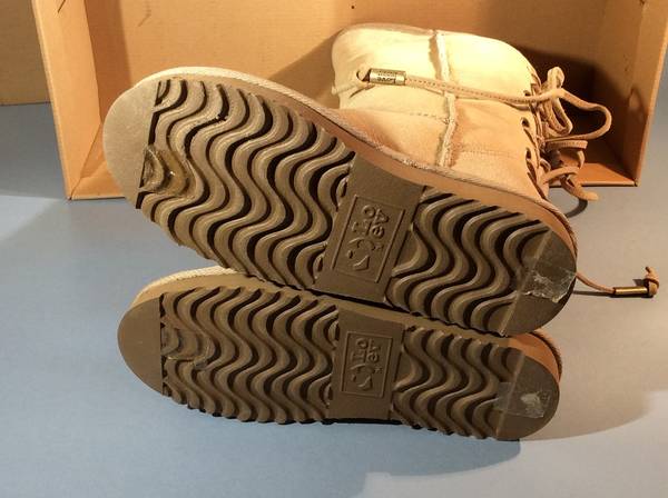 Like Uggs, the boots slip on. No need to unlace and lace. Warm.