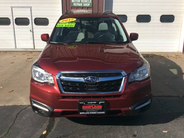 Rowland Street Garage is thrilled to offer this gorgeous 2017 Subaru Forester Premium (AWD) wagon. It is colored in Venetian Red Pearl with a light gray interior. This is a really sharp color combination. It has 131K miles and an automatic transmission. It has a clean CarFax with no accident or damage history. It is a two-owner vehicle according to CarFax. The report also shows over 40 service records from new. In 2021 it was sold as a Certified Pre-Owned (CPO) vehicle at a local Subaru dealer. This is always a great sign of its mechanical and cosmetic condition. It has been very well cared for throughout its life. The exterior is clean and straight. We didn't notice any big dings or scratches. The tires are recent, as well. It has 2.5 liter engine which is very reliable. Maybe its most impressive feature is that it gets 32 MPG on the highway! The interior is spectacular. The seats show a minimal amount of wear. The carpets and mats are clean. It has lots of options (panoramic sunroof, Bluetooth, back-up camera). This is a unique wagon which will impress anybody. It can be shipped anywhere sight "unseen" and its new owner will be thrilled. Please call or e-mail for more information.