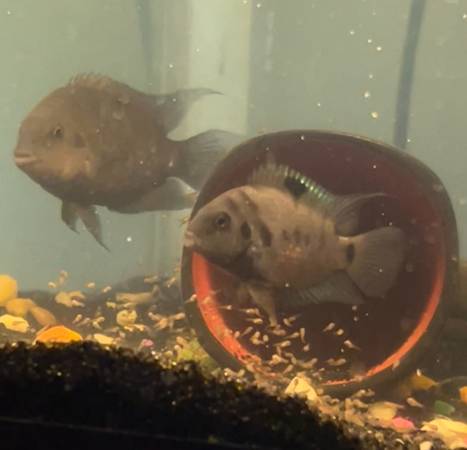 Beautiful live fish breeding pair, male and female convict cichlids, very good parents, take care of their babies, great experience for every fish keeper. $25 for the pair, delivery and shipping available for a small fee.