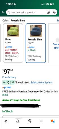 Large Crescent Bean Bag Chair – Soft Corduroy – Adult Size – Prussia Blue - $70 (Troy)
