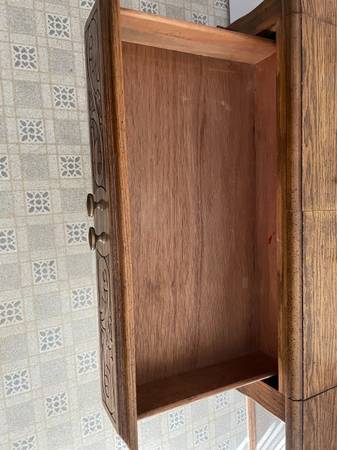 Solid Oak wood bar server, with wheels. Lots of space to store your bar needs.