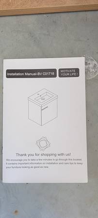 Floating bathroom vanity Like new condition Delta faucet included. Model BV- C01718 Dimensions: 18 in wide 15 in deep 21.5 in high New cost was $239 vanity $99 delta faucet Total $338 plus tax...