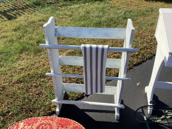 Leather chair $30 , cedar chest ,$75 bathroom towel, rack, stand toilet paper holder.$15 Cheeky seat$15 Desk $25 Storage chest $20.