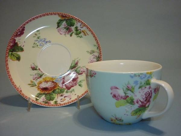 Victoria & Albert Museum Breakfast Cup & Saucer, Victoria, Excellent This is an oversized cup and saucer set. The saucer measures 6 3/4 inches. The cup measures 4 1/4 inches across excluding...
