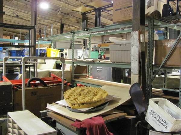 . SEVERAL SETS AVAILABLE OR BUILD YOUR OWN: Penco brand green metal warehouse industrial shelf shelves shelving units. Individual units are 100" wide (96" wide shelves in between two end uprights) x 24" deep x 96" (8' ) high. NOTE: weight capacity unknown but we have several in use with some heavy objects on them. Each one shown comes with 2 end uprights (24" x 96" high), 8 cross beam shelf supports with 4 cross braces per shelf and 2 MDF board inserts per shelf. In excellent clean condition. Build your own set up: uprights are $50.00 EACH, beams (eight MAX per unit) are $25.00 EACH and 2 MDF shelf boards/shelf are $20.00 per set ($75.00 total for 4 sets). Individual stand alone units as shown are $375.00 each, but if you add on other sets they are $325.00 each since they only require one upright. 251115