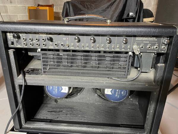 Mesa Roadster 2x12 amp, 4 channels, 100/50 watts switchable on each channel. Loaded with Eminence Texas Heat 12” speakers. Includes foot switch, cable and casters. Great condition
