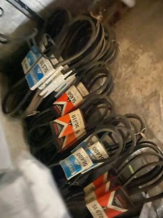 A lot of serpentine belts for sale. They are 3/8 1/2 and 5/8 inches wide by several different lengths long. Would like to sell as a lot. They are new old stock dusty and will need a lil cleaning.