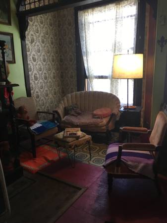 It is a large 1890's Victorian, currently undergoing renovation and restoration, so some areas are “rough around the edges” as it’s a work in progress. It has beautiful original details and my partner and I have been working on it for over four years now. It has a large dining room, kitchen, bedroom (mine), half bath and foyer area on the first floor, and a library, 2 bedrooms and a bathroom on the second floor. All rooms are fully furnished with vintage furniture, artwork and other quirky touches. The house is perched on a hill and in the wintertime there is a dramatic view of the valley and the Mohawk river. There is also a big backyard with a fire ring. You will have access to the whole house with the exception of my bedroom and my studio (which is one of the second floor bedrooms) and the library. I have another renter who occupies the other bedroom. However it is a big house so there is plenty of space for everyone! The bedroom for rent is quite spacious and furnished with a large bed, nightstand, dresser, desk and an armoire for hanging clothes and a mini fridge. Please see pictures.
