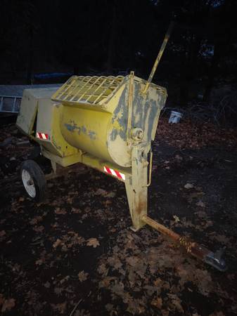 Have a concrete mixer that needs work. Looks like everything is there. Someone tried to take the motor out but never finished. Consider the motor might need work? Harbor freight motors will bolt right up Great for parts or a winter fix project. First $150 takes it home. Tires appear towable,