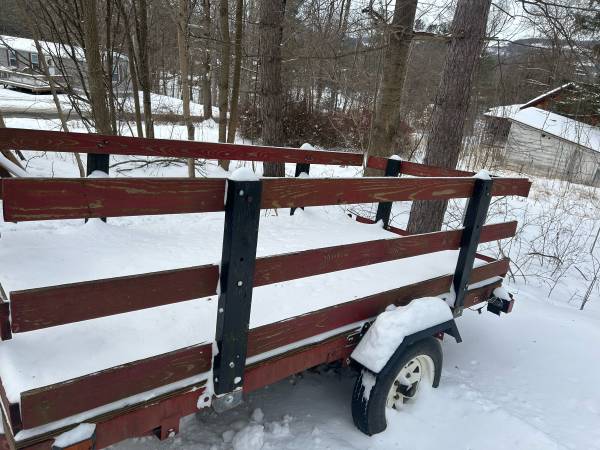 Utility trailer , back gate comes off and on with pegs/ pin . Perfect for moving lawn tractor but just a touch to narrow for atv w/plow .