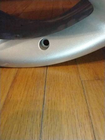 This rim is slightly bent, so slight that even the close up photo I took can barely show it. Elite Wheels in Greenbush will charge $150 to fix it. Other than that the rim is in pretty good...