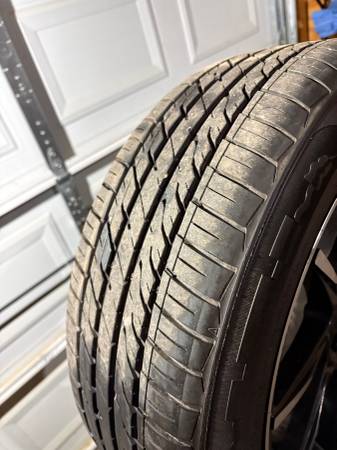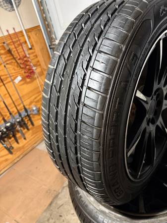 4 Like New 215X55X18 95H Arroyo Grand Sports All Season Tires on RAVETTI Alloy Wheels. Universal Lug Pattern 5x114.3mm and 5x112mm. Fit Lexus, Toyota, Honda, Nissan, Mazda, Mitsubishi, Kia, Subaru, Hyundai, VW, AUDI, Mercedes and many others.