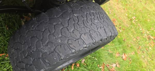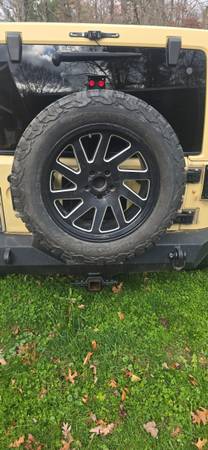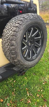 5 Black Rhino Thrust wheels and tires. 285/55/R20 BFGoodrich KO2. Spare is brand new, other 4 will need replaced soon. Wheels are 5X5. Currently on a 2008 Jeep JK. Would prefer a trade. 700 obo